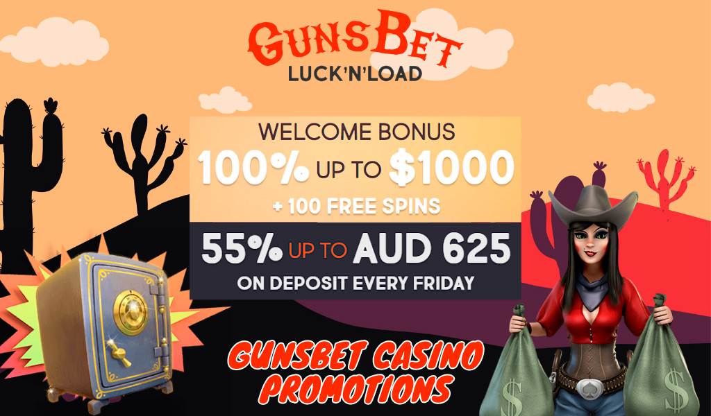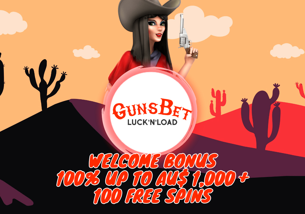 GunsBet Casino sign up bonus doubles your first deposit up to 1,000 AUD and gives 100 Free spins.